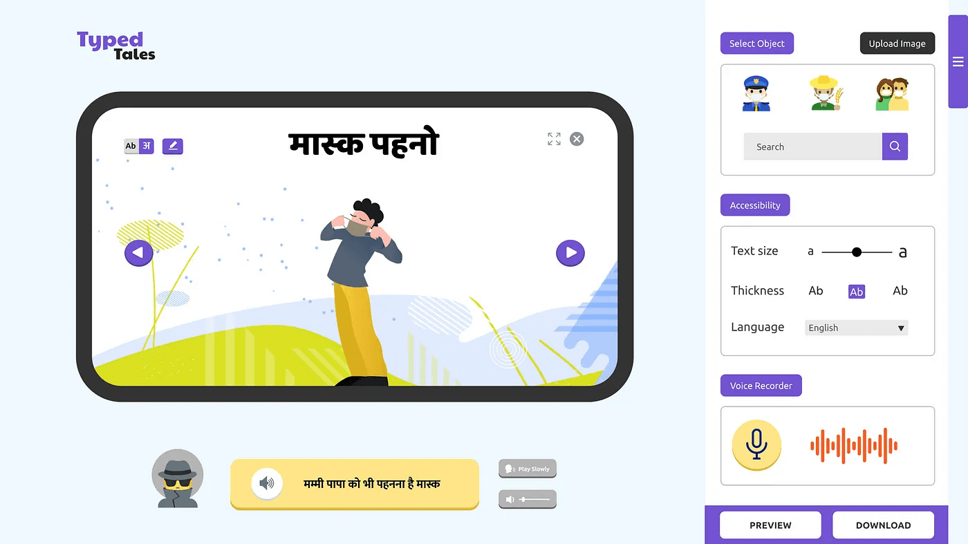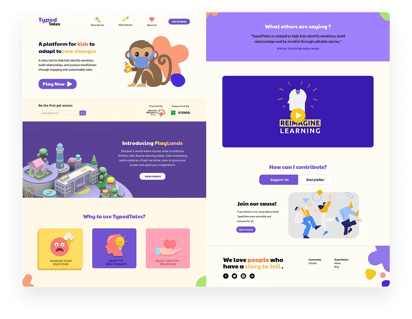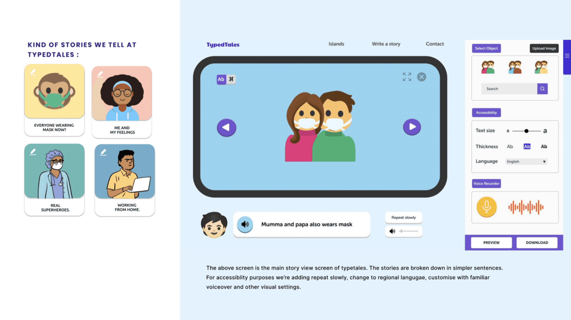 TypedTales is an open community project started by Saloni Mhapsekar and Kritika Sharma in pandemic times in collaboration with Special Olympics Bharat as a part of the college project to aid SEL (Socio-emotional-learning for children with special needs