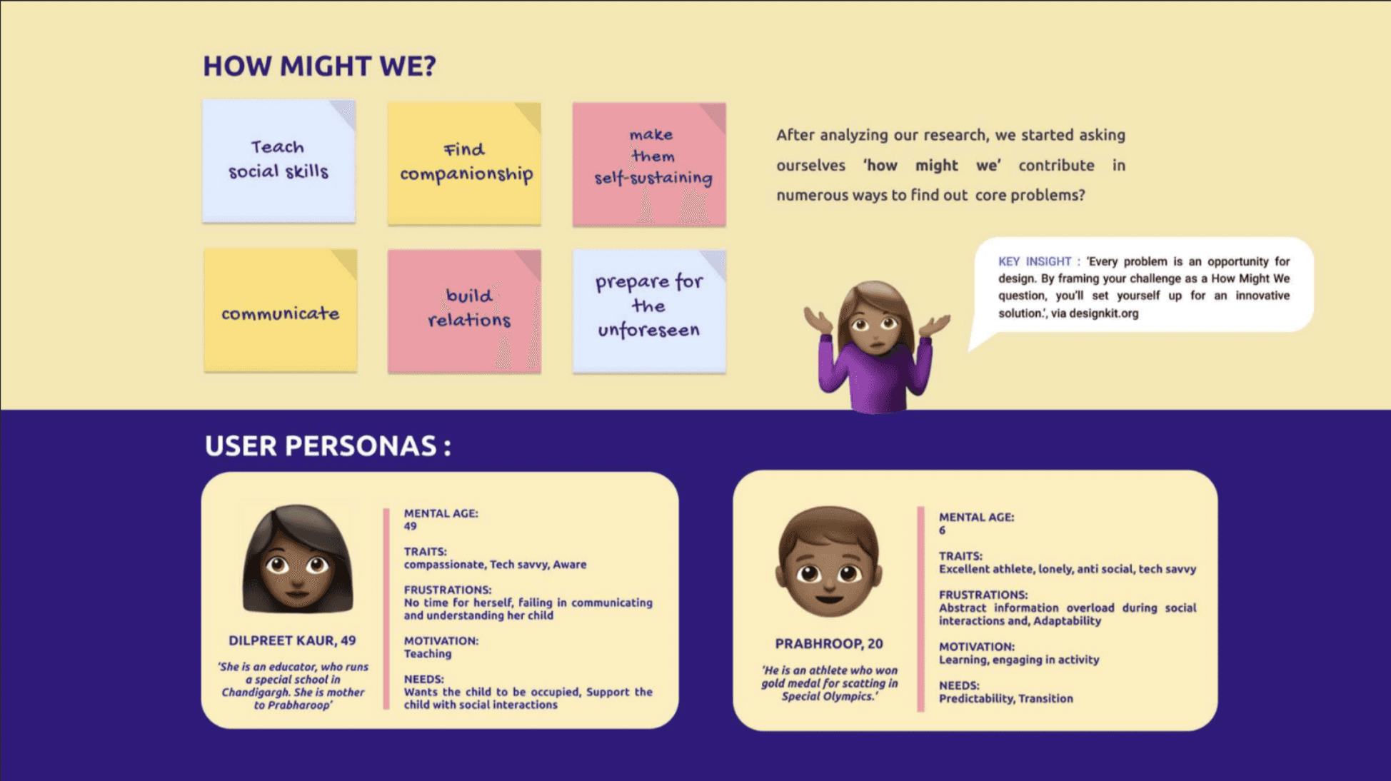 Our journey started with a shared passion for making a positive impact and exploring unconventional topics. My team and I chose to focus on designing for children, but with such a vast field to consider, we needed to further narrow down our target audience
